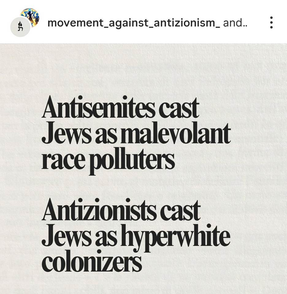 For a full view of the developing argument and activism, see https://www.movementagainstantizionism.org/ and its Facebook and Instagram pages. Here is my platforming of the Movement against Antizionism, MAAZ, for beginners.